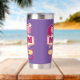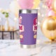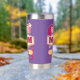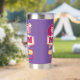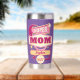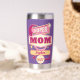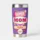 Rótulo Retro Diner Super Mamá Tumbler Termal. Un divertido, audaz, vintage cartel en rosa, amarillo y ciruela que dice "súper mamá" está disponible las 24 horas del día. Personaliza el vaso aislado con el nombre de tu madre y muestra tu aprecio con este gran regalo del día de la madre. Diseño retro creado mediante kittl.com.
