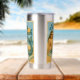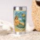 This salty beach is enjoying some time out of the water and under the sun. The gorgeous vintage inspired pin-up mermaid wears sunglasses and a sassy expression. This cheeky twist on classic retro poster art will make you smile. This fun stainless steel tumbler is insulated to keep your drink hot or cold. A perfect statement piece for your daily routine.