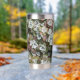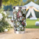 ¡Para los fans de las gotas de piedra! Un tumbler termal de acero inoxidable y moderno para sus bebidas calientes o frías que incluye una foto de envoltura de las pequeñas plantas de gotas de sedum spathufolium. ¡Un bonito diseño botánico!