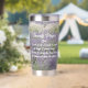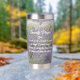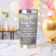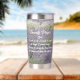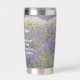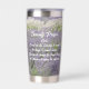 Un tumbler termal de acero inoxidable y moderno para tu bebida caliente o fría que incluye una foto de conjunto de un hermoso jardín de lavanda junto con las inspiradoras palabras de la Oración de la Serenidad impresas en escritura blanca y estilizada.