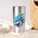 Background: The background is plain and light-colored, ensuring that all attention remains on the detailed drawing of the shark.