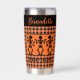 Kick off Spooky Season in style with this fun and festive Dancing Skeleton Trio Halloween Tumbler from “Plaid Perfection”! This playful design features three cheerful skeletons dancing in unison above the editable phrase “Spooky Season” in bold, seasonal lettering, and a custom name — a perfect mix of cute and creepy. Set against a cozy orange and black plaid background, this tumbler captures the lighthearted side of Halloween with a rustic farmhouse twist. Whether you’re sipping your morning coffee, pumpkin spice latte, or hot cider, this tumbler brings a smile with every sip. It’s a great addition to your fall kitchen décor or an ideal gift for anyone who loves skeleton humor, Halloween or autumn aesthetics. Edit text from the product page or to change font style or color, use the design tool.