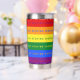 This water tumbler features the intersectional pride flag colors of red, orange, yellow, green, blue and purple, along with black, brown, lt blue, lt pink and white, to include people of colour and transgender people. On top is the slogan 'our stories matter'. You can customise every element of this design, from text to colours, in the Zazzle design tool. 🏳️🌈 For more pride gifts, visit my store Zazzle.com/JessicaAmberArtist 🏳️🌈 For custom orders, message me on Zazzle