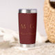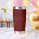 Enjoy beverages on the go with this maroon insulated tumbler, personalized with a stylish monogram and couple’s names. Designed for durability and convenience, it keeps drinks hot or cold while adding a chic, custom touch. Perfect for daily use, travel, or gifting, it combines practicality with elegant personalization.