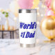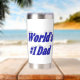 Tumbler con el primer papá del mundo en texto azul 3D.
