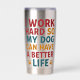 Este diseño es para todos los propietarios de perros dedicados. Con la frase relativa "Trabajo duro para que mi perro pueda tener una vida mejor" en una mezcla de colores vibrantes, esta camisa es una manera divertida y sincera de mostrar tu devoción a tu mejor amigo. La adición de sutiles huellas de pata lo convierte en el diseño perfecto para todo aquel que ame más que nada a su compañero canino.
