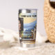 Thermal tumbler featuring your custom logo, photo and texts on a photo of your custom destination or other topic. Nice for travels or a road trip.