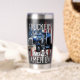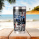 Celebrate the backbone of the nation with this stainless steel tumbler featuring a powerful semi-truck against a distressed American flag backdrop. The bold “TRUCKERS MOVE AMERICA” message honors the hardworking drivers who keep the country running. Perfect for truckers, logistics pros, or anyone proud of the road warriors behind the wheel.
