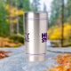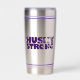 Este tumbler aislado se muestra en una huella Husky Strong. Acero inoxidable Elija otro estilo o compre como está. Imagen con licencia