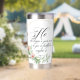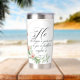 Botella Aislada Un buen trabajo, marco de tulipanes rosados