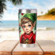 A sweet Christmas tumbler with a cute elf cartoon and a festive background.
