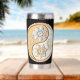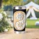 A yin yang symbol is adorned with intricate floral patterns and leaves. The design features a harmonious blend of gold and silver colors.