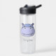 Una botella de agua con una cara de hipopótamo morado al estilo Kawaii: una idea de regalo para un excursionista o un chica que ama los animales Kawaii. ¡Viene con un nombre de personalizable!