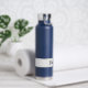 Esta botella de agua aislada se muestra en azul marino con un nombre de muestra personalizado. Personalizar este elemento y cambia el nombre del ejemplo al tuyo.
