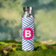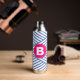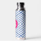 Botella De Agua Abstract Blue Stripey Pattern Pink Monogram