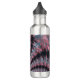 Arte con flores abstractas colocadas en filas simétricas en forma de traza fractal. Las flores son de colores y colores claros como el rosa o el azul con un toque de luz, mientras que el color oscuro del fondo contrasta con las flores. Toda la composición parece cuidada, original y pegadiza.