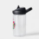 Bonito acuarela arte flores color púrpura y rosa en una botella de agua personalizada en forma de corazón.