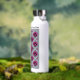 Propaga la belleza por todas partes con una botella de agua aislada que contiene un mensaje inspirador junto con un hermoso diseño que contiene fotos de amapolas moradas de bonito rodeadas de bordes hechos de los intrigantes patrones encontrados en la corteza de los árboles.