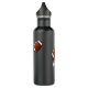 Botella de agua negra de gran aspecto, con gráficos de balones de fútbol marrón y blanco, en el medio. Personalizado qué texto, en el frente, está listo para personalizar para ti o para tu fan o jugador de fútbol favorito.