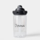 Botella de agua personalizada. Chica de anime con colas de ponis y arcos en el pelo comiendo fideos de Ramen.
