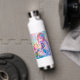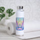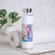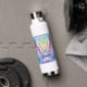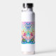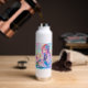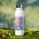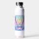Botella de agua personalizada para una niña pequeña. Bonito morado, rosa y azul chica de anime y axolotl.