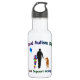 Orgulloso autismo papá y su hijo caminando con su perro en rompecabezas de autismo, y "Acepto de Amor" para apoyar al padre autista y a su hijo.
