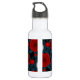 Botella De Agua Aves y flores de peón rojo con hojas azules