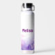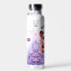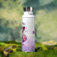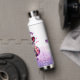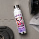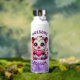 Botella de agua personalizada con personalizado opossum con un juego de palabras, "formidable possum". Pósum rosado en flores rosadas sosteniendo un corazón.