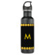 Moderno y elegante estilo dorado con rayas punteadas en una botella monogramada negra. ¡Como el oro!
