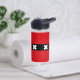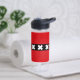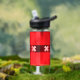 Botella de agua con diseño con bandera de Ámsterdam, capital de los Países Bajos, bandera roja y negra con tres cruces blancas de San Andrés en el centro