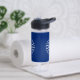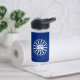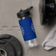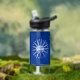 Botella de agua con bandera de la ciudad de Búfalo, Nueva York; bandera azul con sello blanco de la ciudad y 13 pernos relámpago