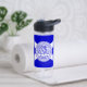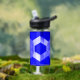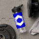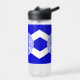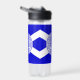 Botella de agua con una de las dos banderas oficiales de Charlotte, Carolina del Norte. Una bandera azul con un neumático blanco (Cruz de San Andrés) y un sello