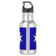 Botella de agua con un diseño con la bandera de la Prefectura de Chiba en Japón (千 葉 県, Chiba-ken), una bandera azul con un símbolo blanco y amarillo