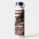 En esta botella de bebidas patrióticas, un águila calva se pone a tierra, con las alas y las garras estiradas. En el fondo hay una angustiada bandera de Estados Unidos.