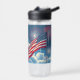 Botella De Agua Bandera Patriótica Americana con fuegos artificial