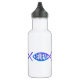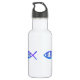Tres símbolos cristianos de peces con la palabra "CREER" en el centro decoran esta botella de agua.