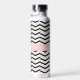 La combinación clásica de blanco y negro se acentúa con capas de rosa rubor en este elegante y moderno patrón de chevron con capas de diferentes espesores para romper las cosas. Personalizar el monograma con su inicial para crear una botella de agua que sea única para su uso.
