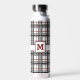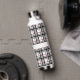 Una decoración clásica y acogedora, de líneas depuradas, da un toque elegante al combinar una combinación clásica de fondo blanco con barras negras y grises con un rico acento rojo. Personalizar el monograma con su inicial para crear una botella de agua que sea única para su uso.