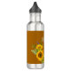 Bonito botella de agua de bodas otoño/otoño presenta un ramo de girasol color agua sobre fondo marrón dorado con bloques de texto de personalizable blanco en fuentes modernas