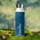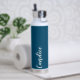 Regale a su boda dama de honor o dama de honor con esta botella de agua insulada al vacío y a la moda que presenta su nombre en blanco y estilizado con un fondo de color azul verde azulado diseñado para coincidir con su esquema de color boda. Personalice el frasco editando y reemplazando el nombre por el suyo según lo desee. Seleccione su estilo de botella de agua.