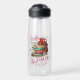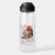 A fun and cheerful Christmas holiday design showcases a stack of books topped with a pair of glasses, a red and green scarf, and a cup of hot cocoa with whipped cream. Surrounding the books are holly leaves, candles, and stars. The colorful text reads: "Books, blankets, and hot cocoa." This design is available on a variety of products, making it a perfect gift for book lovers.