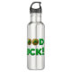 Un Leprechaun gracioso con un traje verde con barba roja y una moneda de oro en la mano te desea buena suerte.