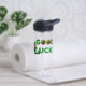 Un Leprechaun gracioso con un traje verde con barba roja y una moneda de oro en la mano te desea buena suerte.