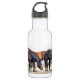 Diseño fotográfico de un rebaño de caballos esperando ser alimentados.