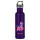 Una colorida botella de cangrejo rosa y azul con el nombre del propietario debajo de la imagen.
