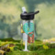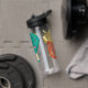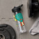 Esta botella de agua es perfecta para estar hidratada cuando estás en el padel. Está ilustrado con raquetas de tenis de padel y pelotas en verde azulado, barro cotta, dorado y amarillo y está listo para ser personalizado con un nombre en la parte delantera para coordinar las letras verde azuladas.