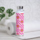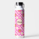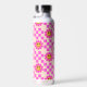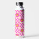 Botella De Agua Checkered Hot Pink Smiling Flowers Custom Name
