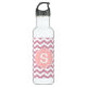 Botella De Agua chevron zigzag rosa simple, elegante y moderno