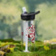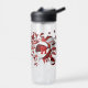 Esta fresca botella de agua de baloncesto de chica tiene una "explosión" de baloncesto de tamaño variado rojo y blanco y formas estrella grises y rojas - personalizar con el nombre del atleta, número de monograma y camiseta - de katz_d_zynes