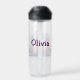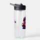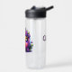 Una adorable calabaza kawaii chibi naranja con flores moradas en ella Feliz Halloween personalizado botella de agua para niños.